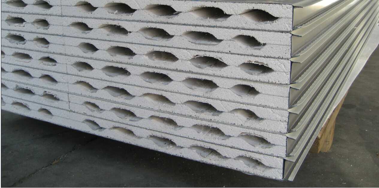 中空玻鎂彩鋼夾芯板以二層5mm防火玻鎂板、中間加防火玻鎂內(nèi)隔條為芯材,經(jīng)彩鋼夾芯板多功能連續(xù)生產(chǎn)線(xiàn)復(fù)合成型,中空玻鎂彩鋼夾芯板其特點(diǎn)...